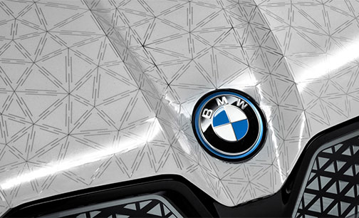 However, wrapping an entire car with an E Ink display was an engineering feat because of the vehicle’s myriad contours, angles and other exterior surface details, O’Malley says. “The first things you’ll see will be smaller components [that use the technology] and it will probably be years before we get to a full car,” he predicts. On the iX Flow, the wheels also were wrapped in E Ink’s color-changing digital paper. “We think about surfaces, and [enabling them] to either be design elements or functional elements,” he says.