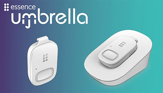 It’s a 5G-enabled mobile personal emergency response system (mPERS). The ultra-small Umbrella™ integrates with Essence’s multi-service cloud and includes built-in fall detection, real-time activity monitoring, two-way voice capabilities and life-saving functions such as panic detection that immediately notifies caregivers.